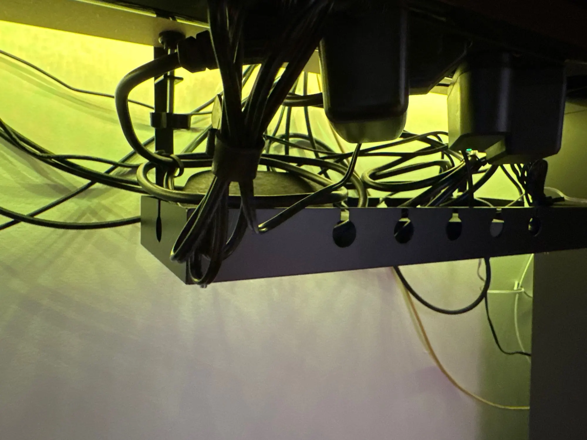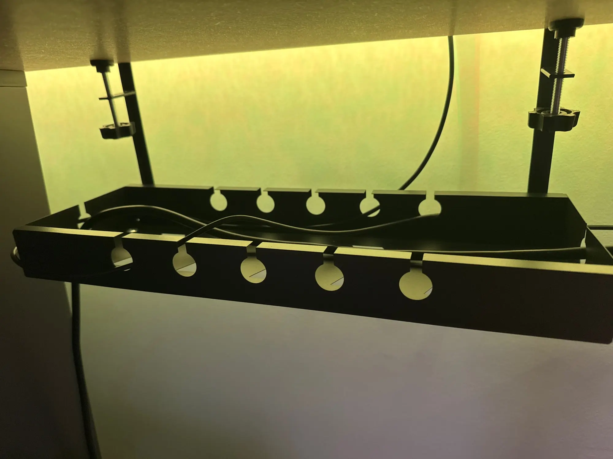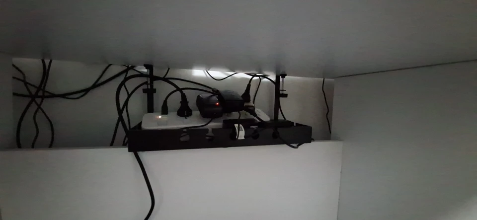 Sublimez votre espace de travail avec cet accessoire maître, conçu pour ceux qui recherchent une gestion filaire invisible et raffinée. Cette goulotte rangement câbles permet de dissimuler vos multiprises et transformateurs directement sous votre plan de travail, transformant le désordre électrique en un ensemble minimaliste et professionnel. C'est l'organisateur idéal pour libérer vos jambes et votre champ visuel, alliant une robustesse en fer de haute qualité à une esthétique épurée qui s'intègre avec discrétion dans votre bureau.